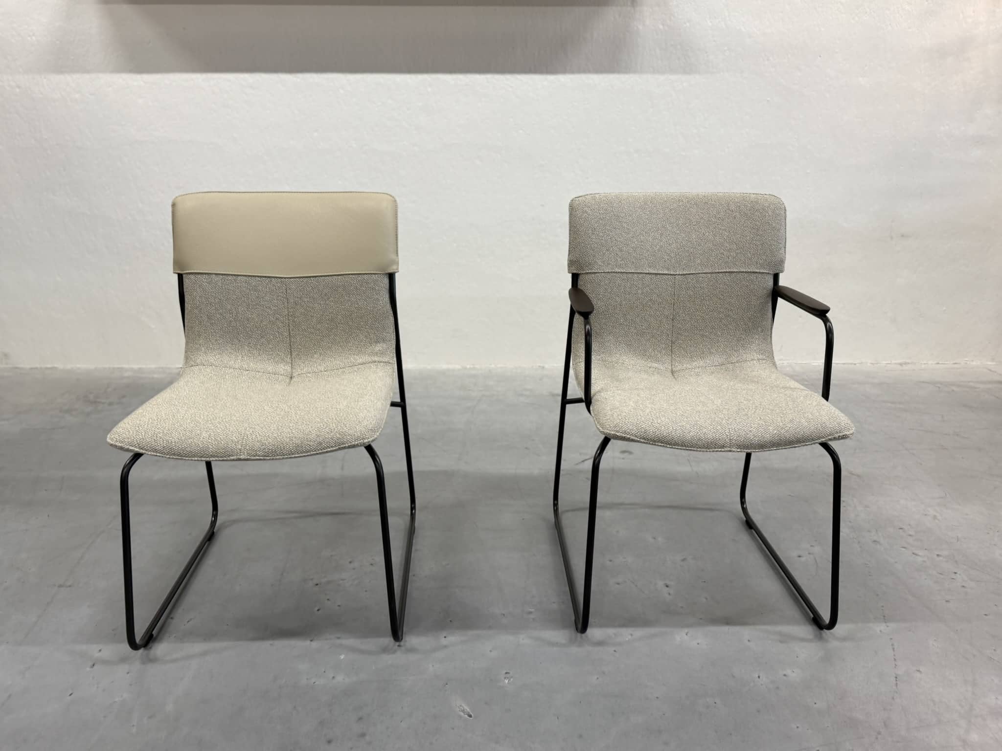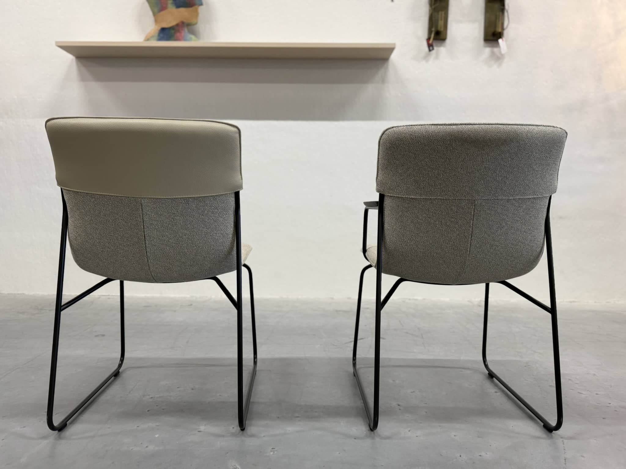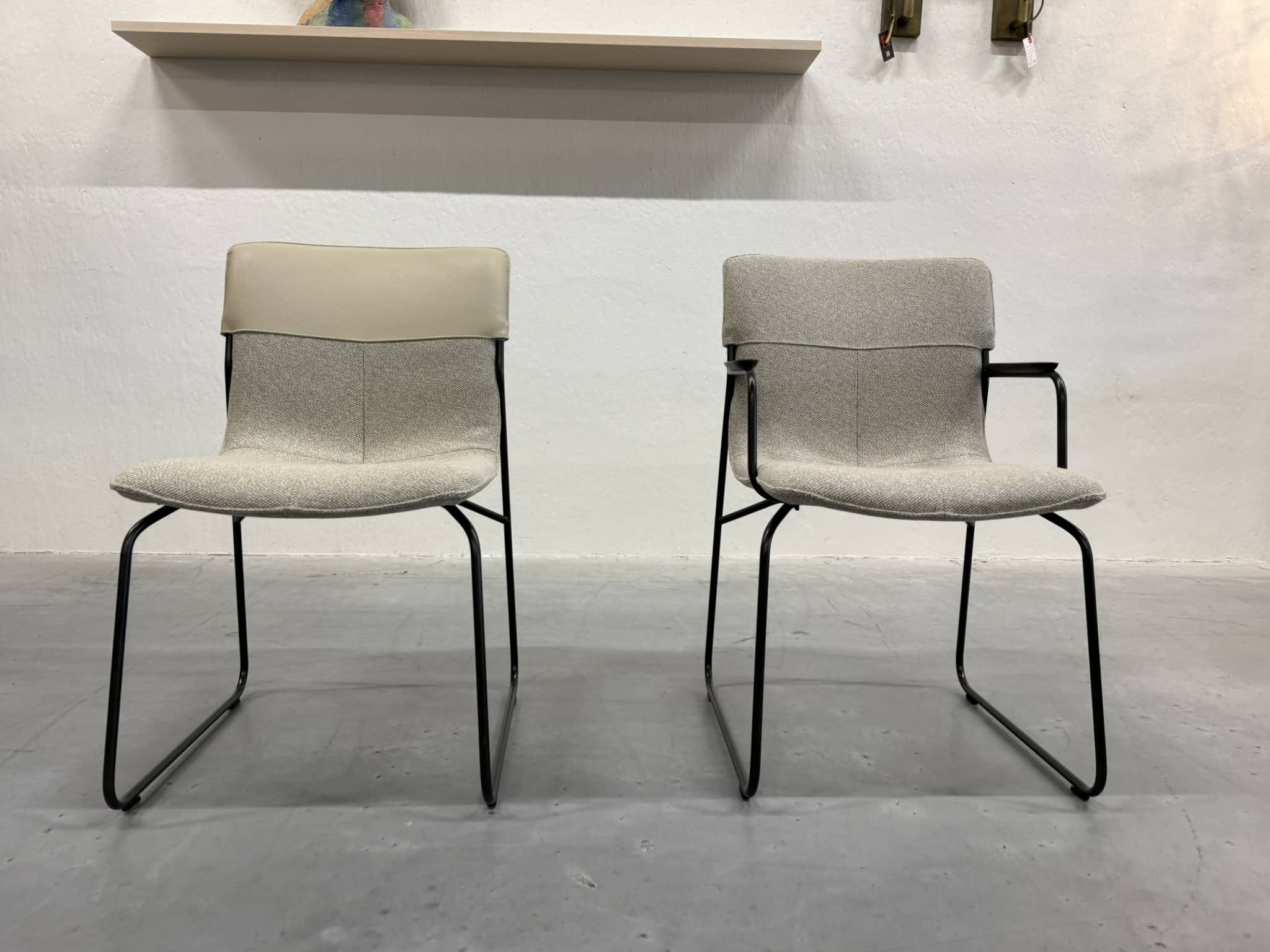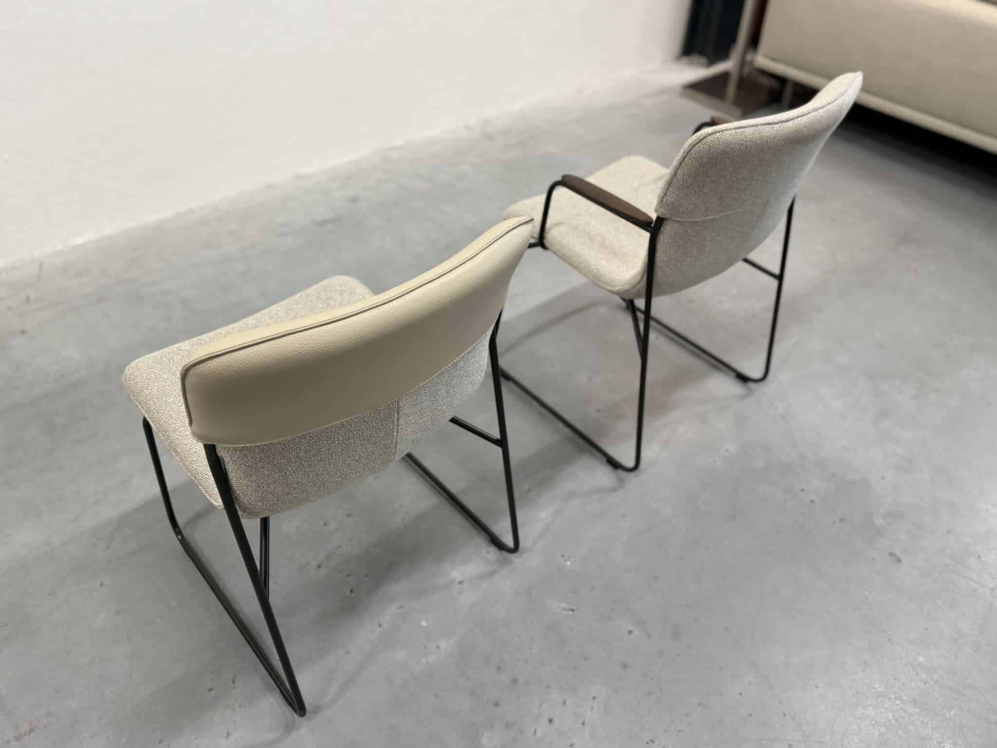 2 nieuw leolux Ditte eetkamerstoelen uitgevoerd in Loft 200 stof in de kleur Langsat.