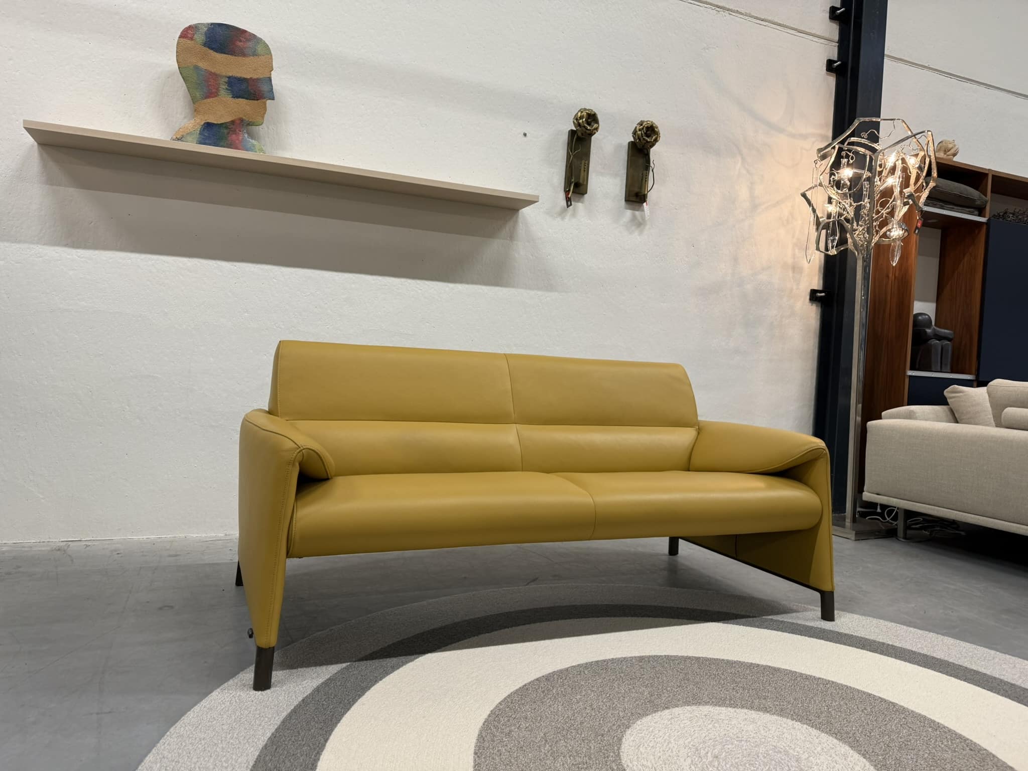 Als Nieuw Leolux Felizia Bank 2.5 Zits laag Uitgevoerd in Senso Leder in de Kleur amber.