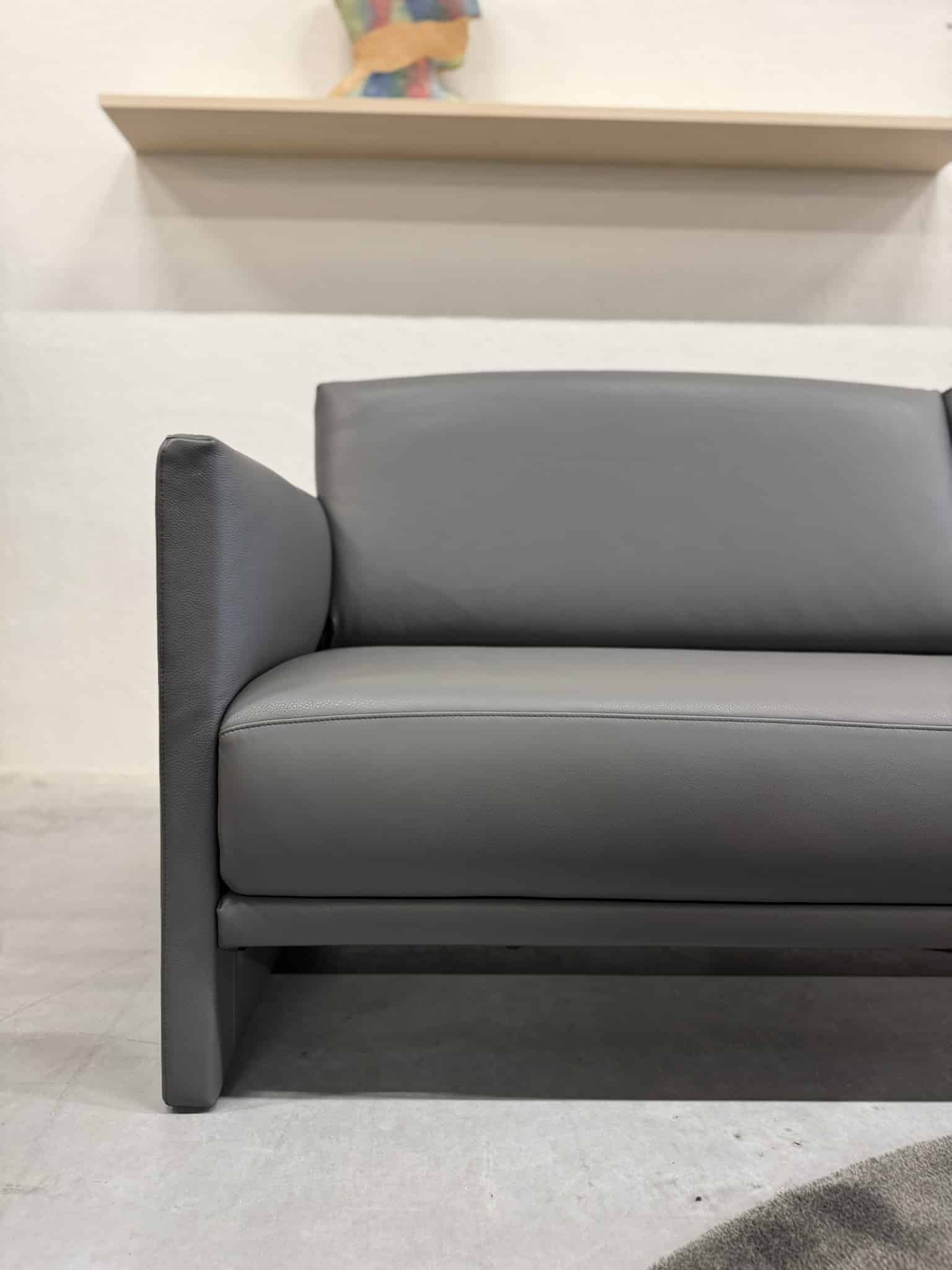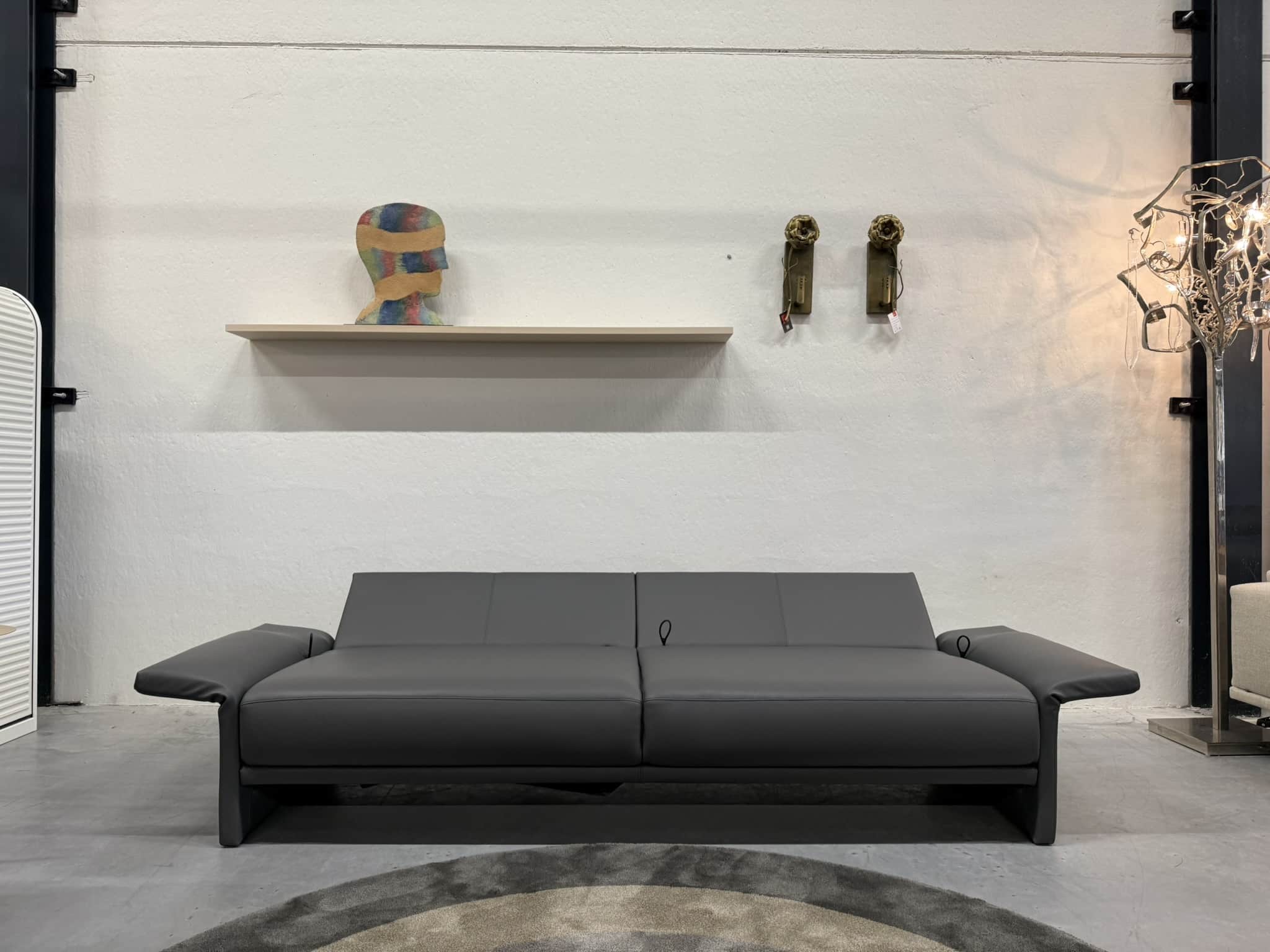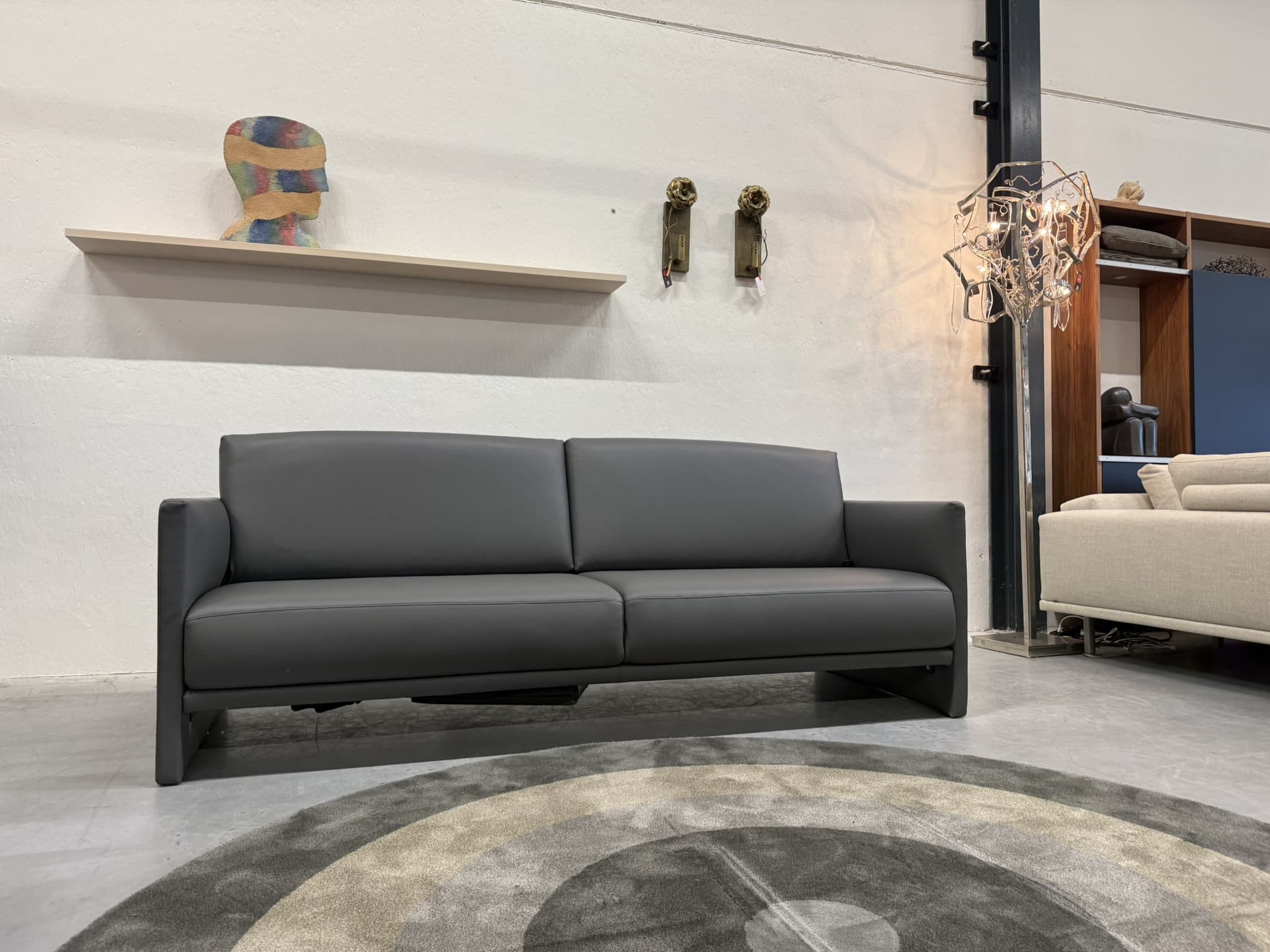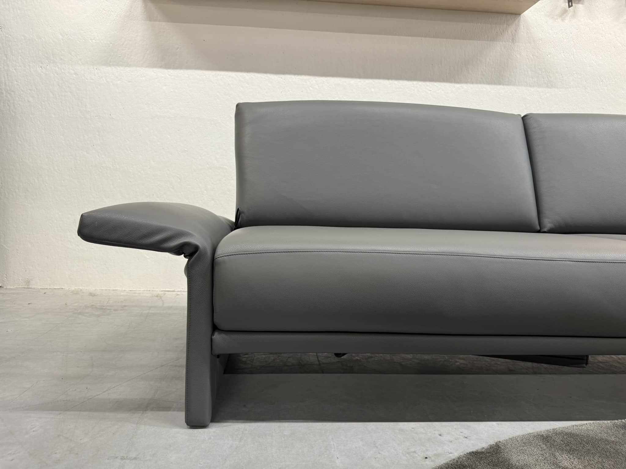 Deze Rolf Benz Cara bank is een toonbeeld van verfijnd comfort en minimalistisch design. Uitgevoerd in prachtig, soepel leder uit ledergroep 38, straalt de bank pure klasse uit. De diepe, warme kleur en fijne structuur van het leer geven de bank een luxueuze uitstraling die naadloos past in een modern interieur.