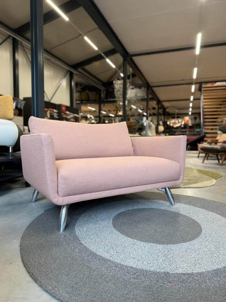 Deze uitvoering is bekleed met Milton stof in de kleur Flamingo. De stof geeft de loveseat een luxe, verzorgde uitstraling en voegt subtiele structuur toe, terwijl Flamingo zorgt voor een levendig, warm kleuraccent dat je interieur direct karakter geeft. Ideaal als je een statement wilt maken zonder dat het druk wordt zeker in combinatie met neutrale tinten, hout en zachte materialen.