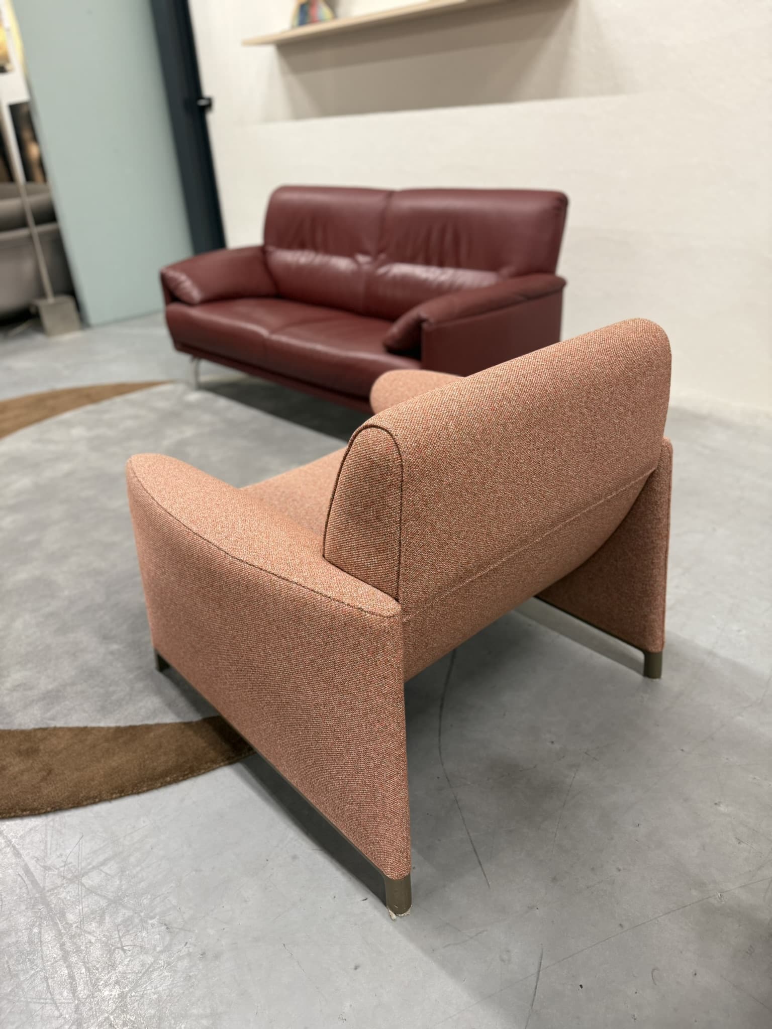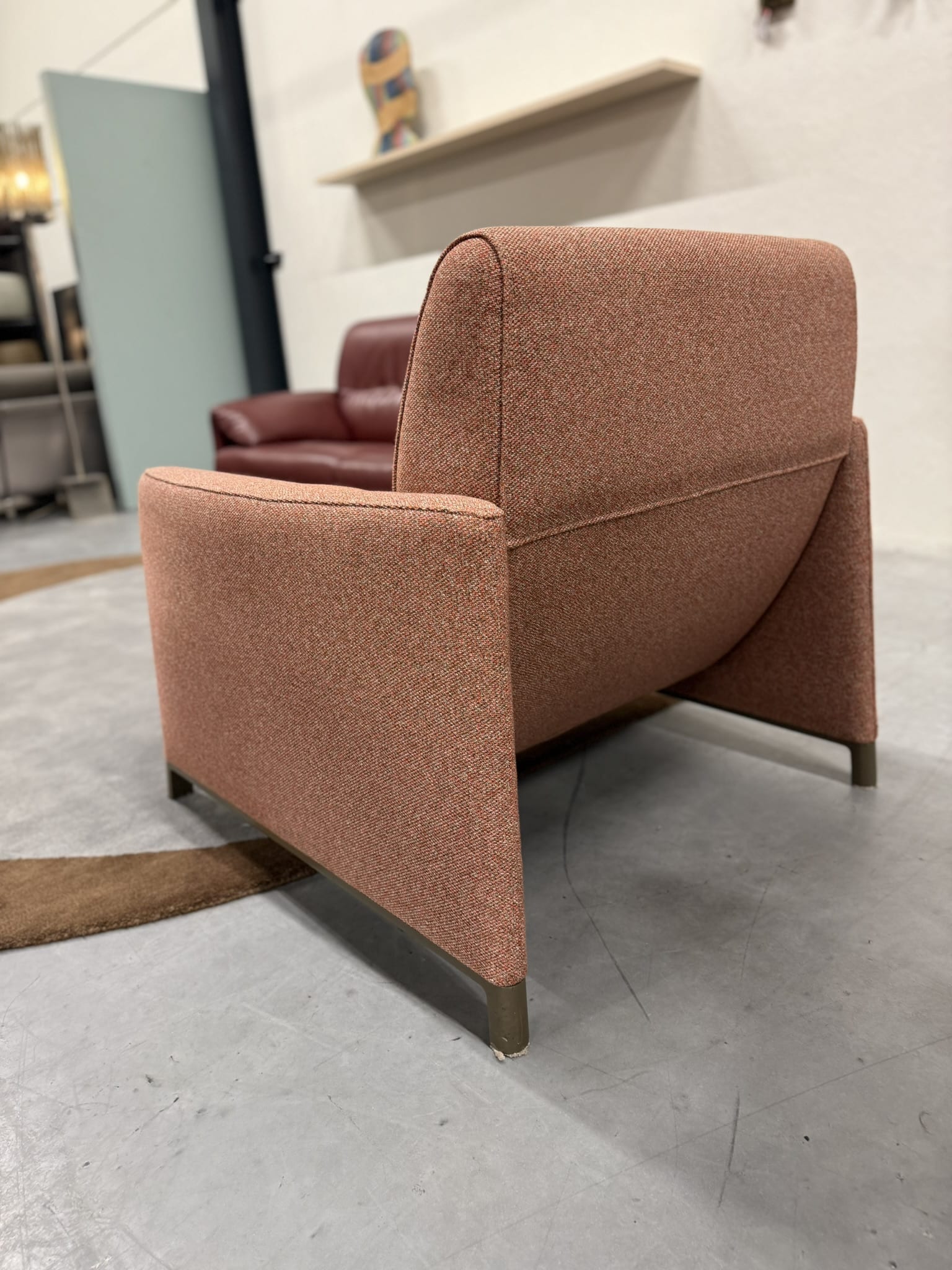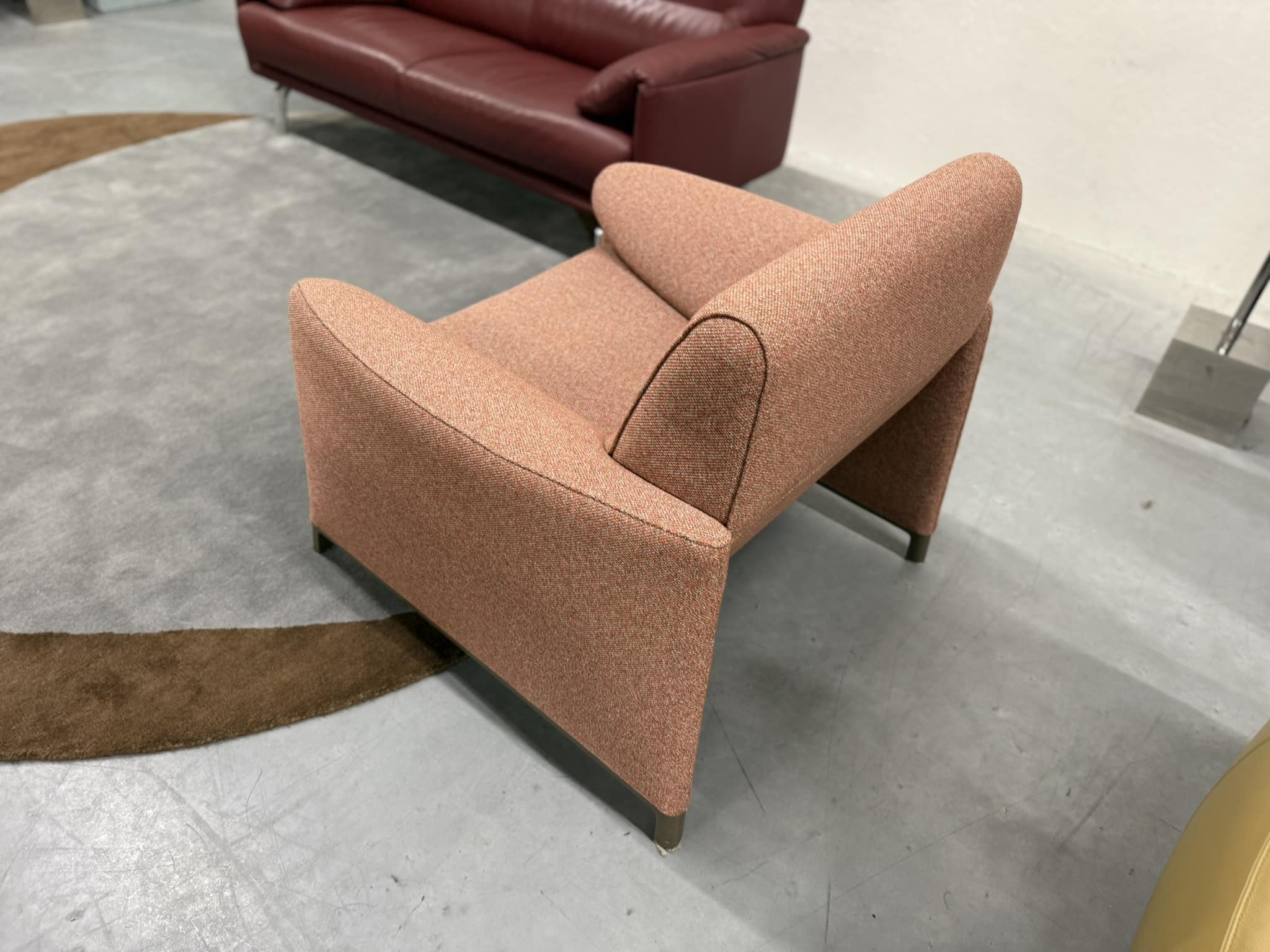 Nieuwstaat Leolux Felizia Fauteuil uitgevoerd in Loft stof in de kleur Kaki.