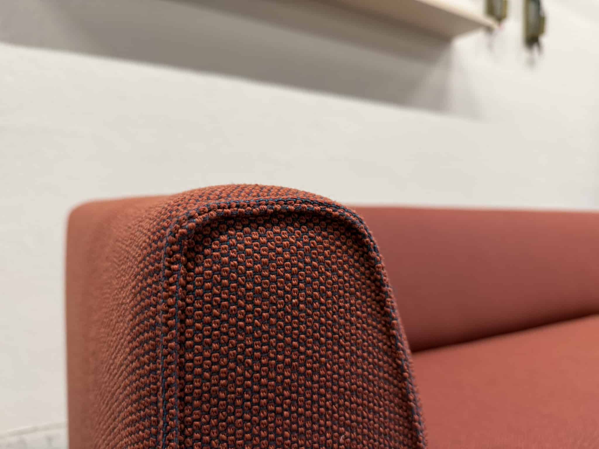 Nieuw Gelderland 4800 3 Zits bank uitgevoerd in Rohi opera stof in de kleur Rood. Met Alu. Onderstel. (zwart onderstel beschikbaar.)
