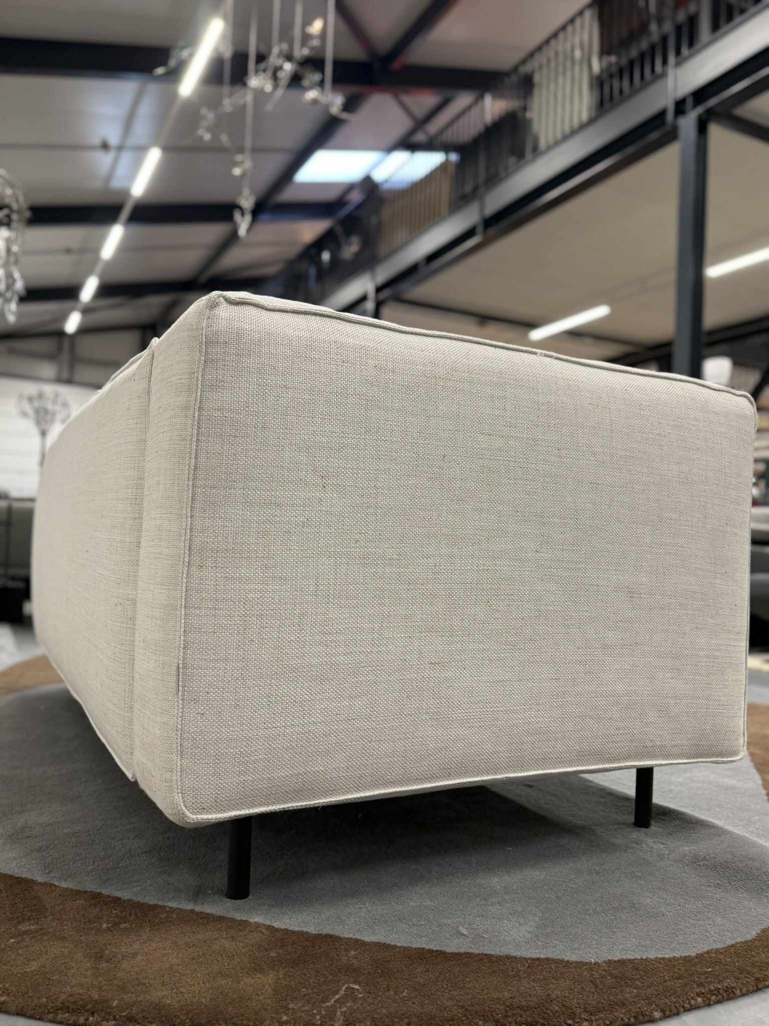 De 2,5-zits opstelling is compact maar royaal, en biedt een comfortabele zit met een zithoogte van 45 cm en een zitdiepte van 60 cm. Het solide ontwerp rust op een strak onderstel dat de bank een luchtige, moderne uitstraling geeft, terwijl de diepe zit en iets hogere rug optimale ondersteuning bieden.