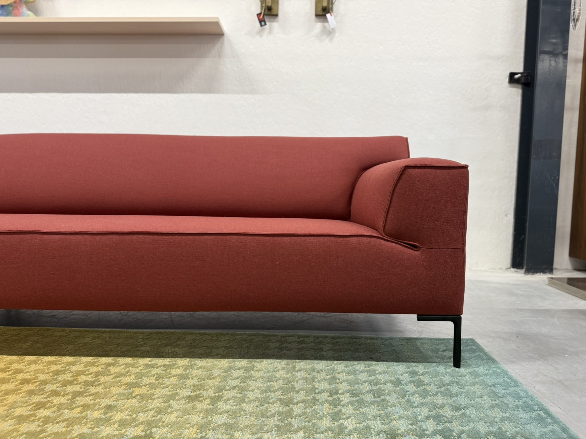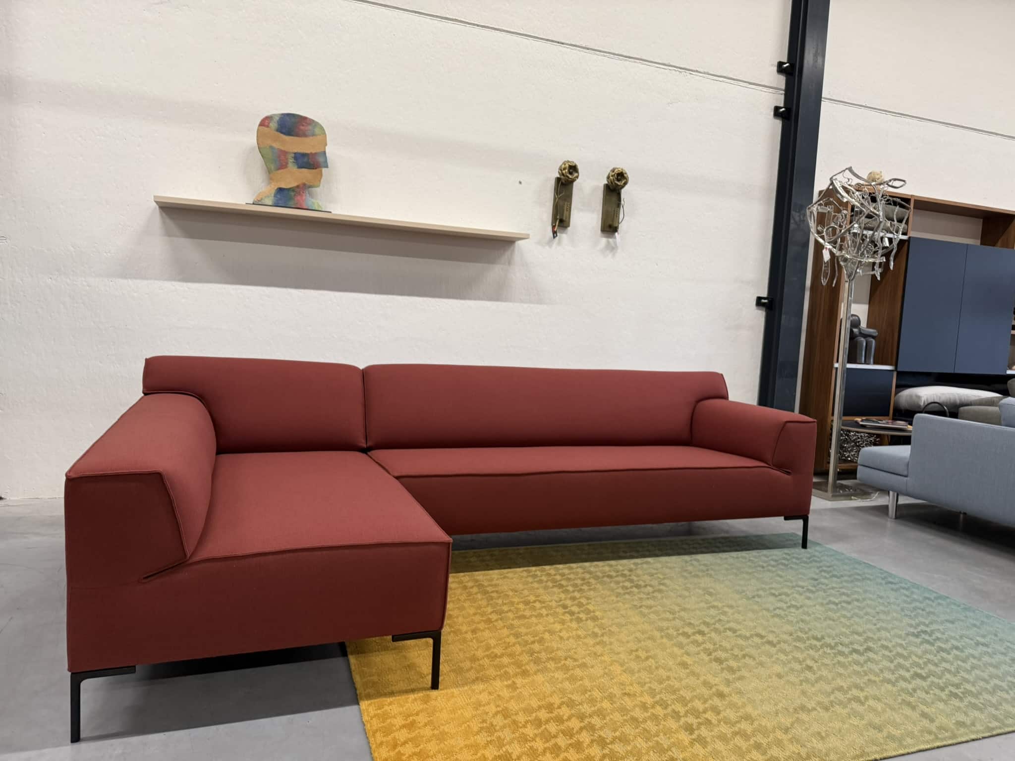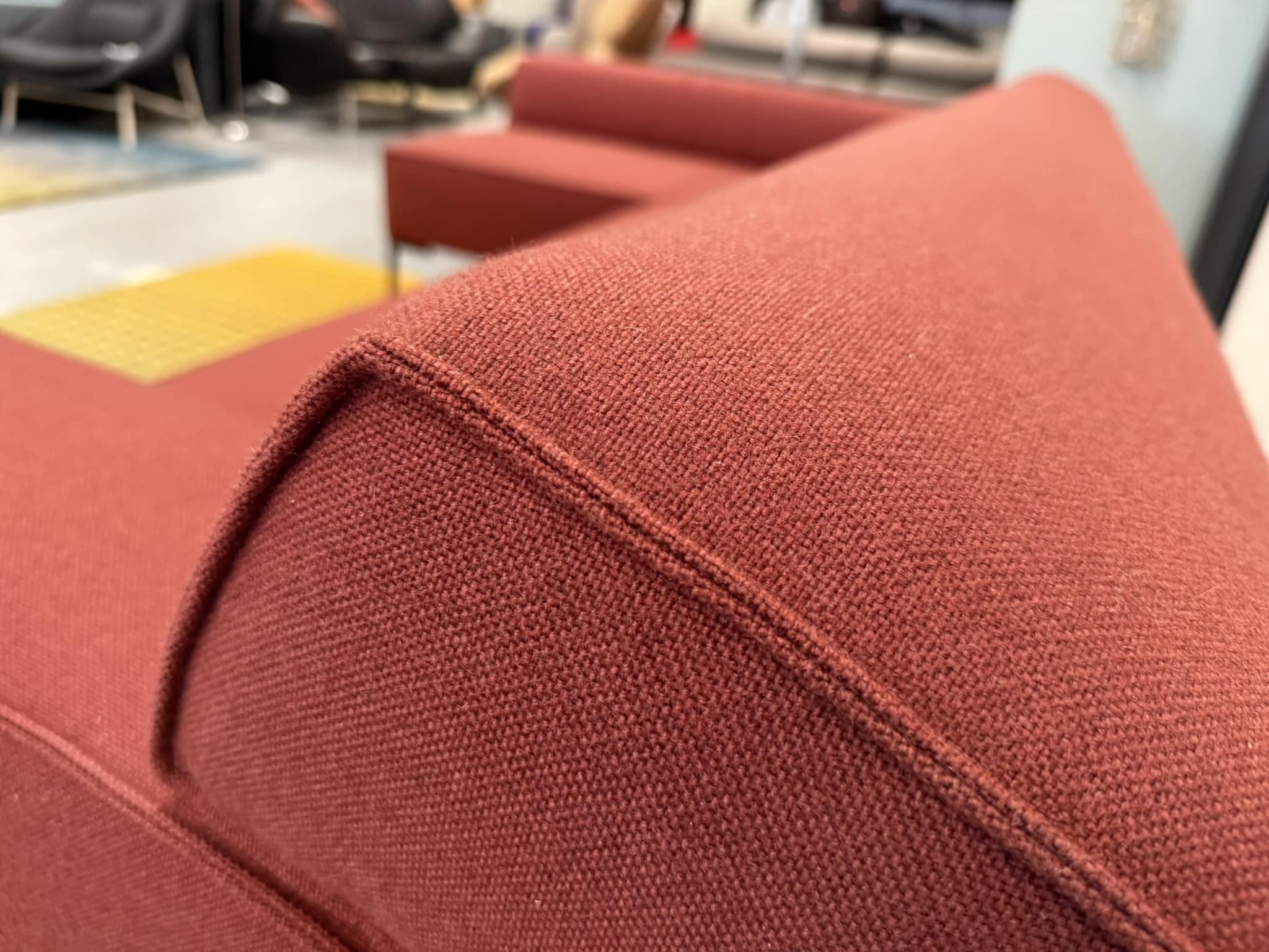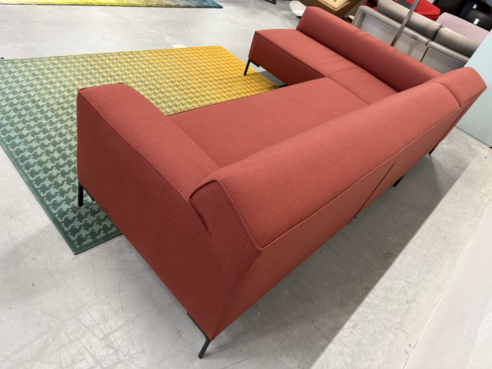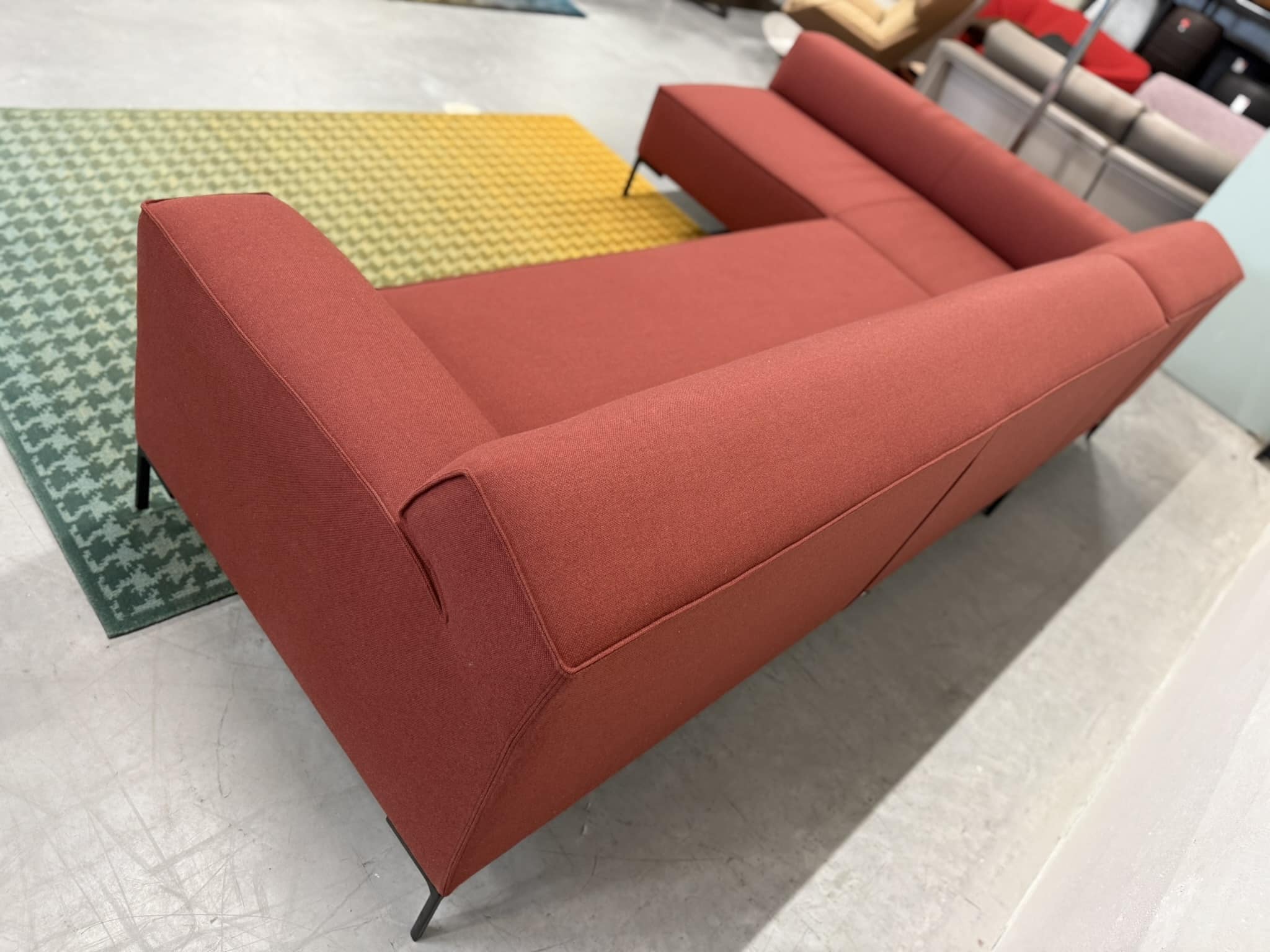 Nieuw Refurbished Design On Stock Bloq Hoekbank bestaande uit Chaise Longue & 3 zits 1 Arm. uitgevoerd in De Ploeg Ploegwool stof in de kleur rood.