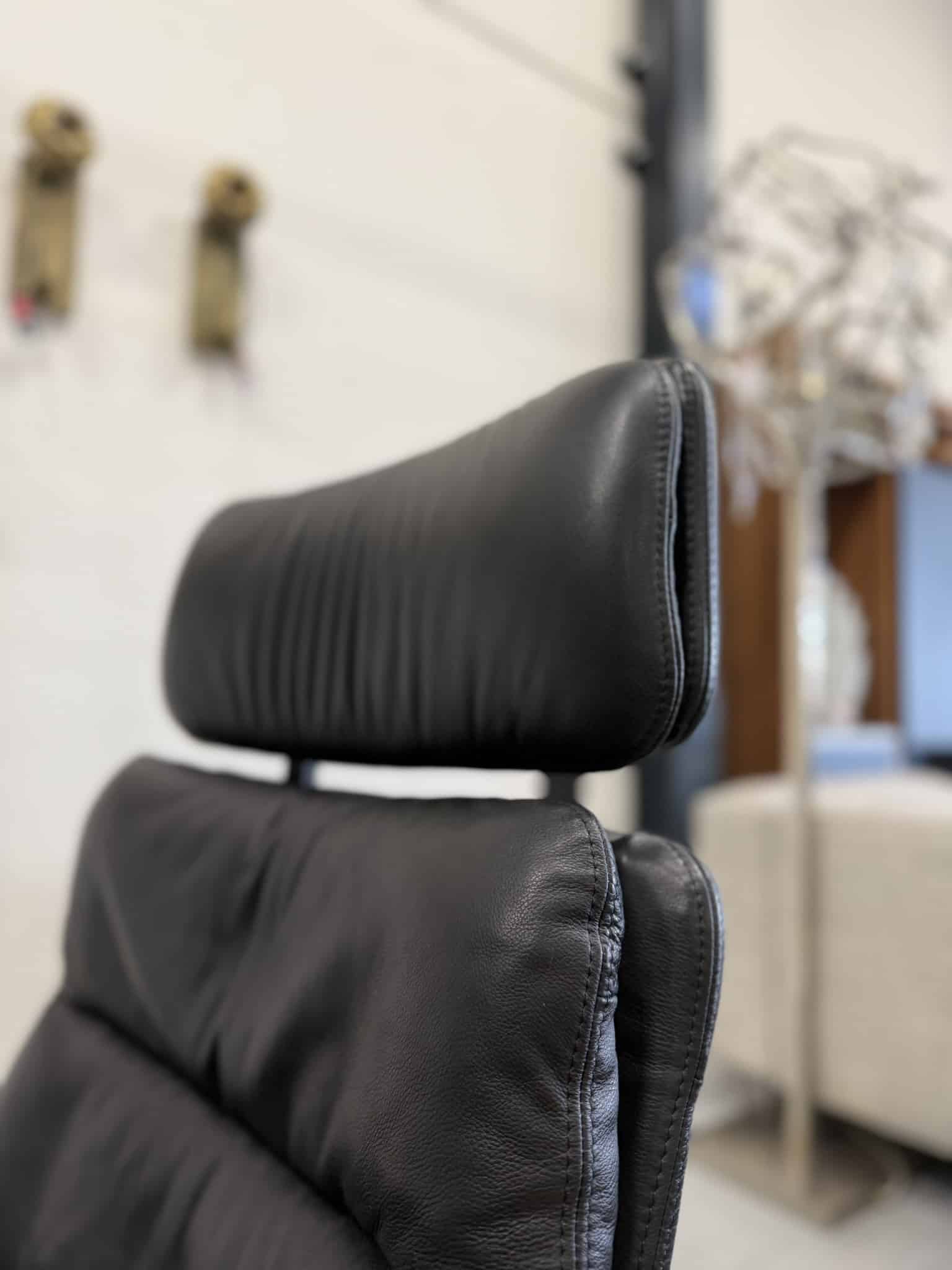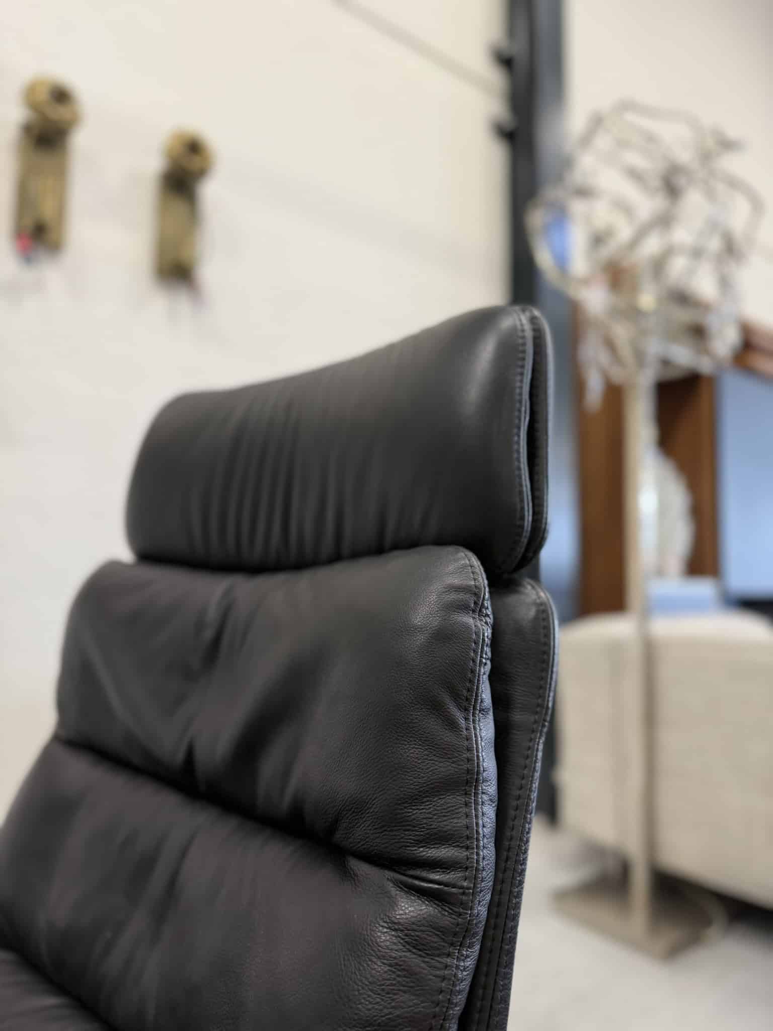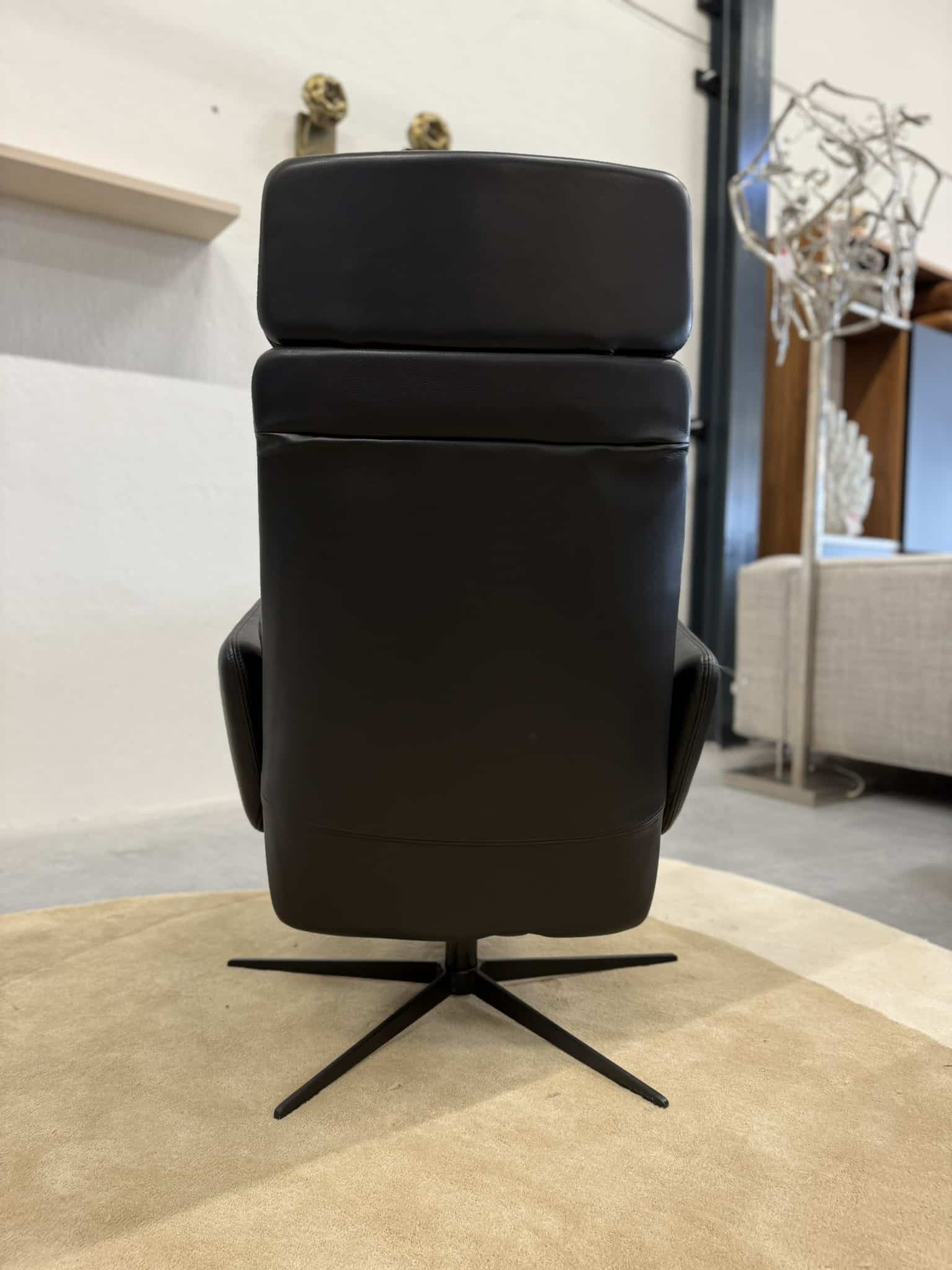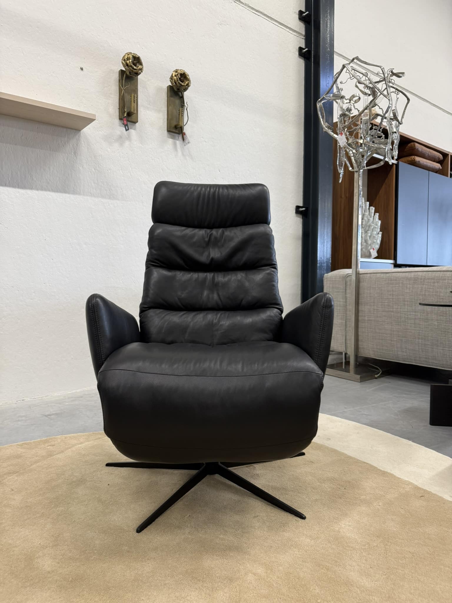 Luxe relaxfauteuil met strak zwart onderstel, die comfort, techniek en design perfect combineert.