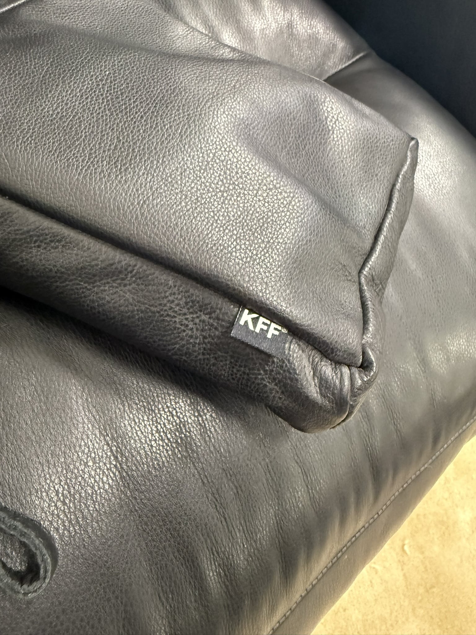 De KFF Arva E‑Lounge in zwart Sauvage-leer met zwart onderstel is een stijlvolle relaxfauteuil waarin comfort en design perfect samenkomen. Geïnspireerd op Mid-Century vormen en uitgevoerd met hoogwaardige materialen, straalt deze fauteuil luxe en duurzaamheid uit.