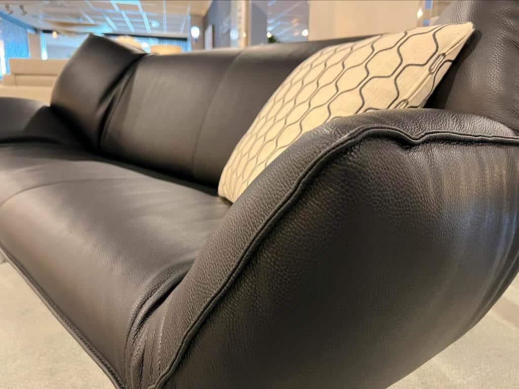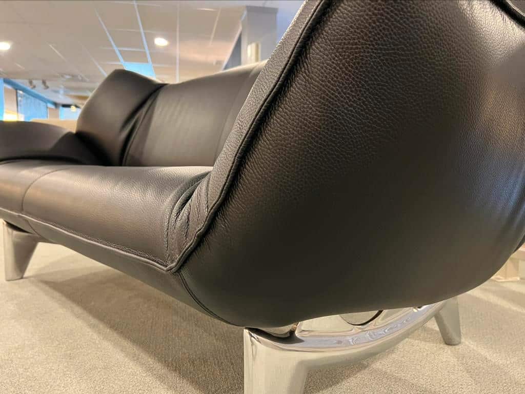 Deze uitvoering is bekleed met zwart leer. Dat geeft de bank een luxe, krachtige look die gemakkelijk te combineren is met vrijwel iedere woonstijl. Zwart leer voegt diepte en klasse toe en vormt een stijlvolle basis naast materialen als hout, natuursteen, staal of zachte stoffen.