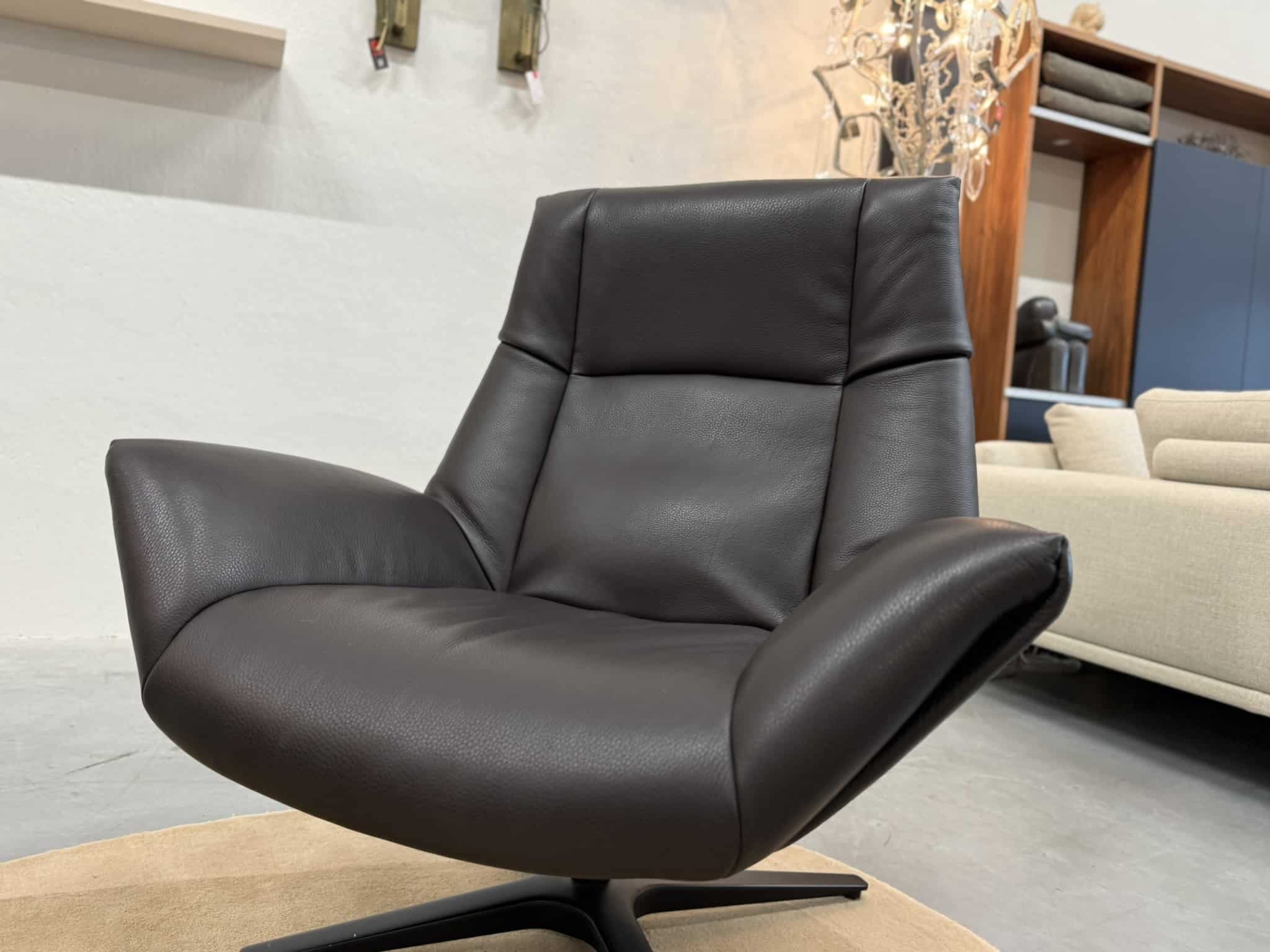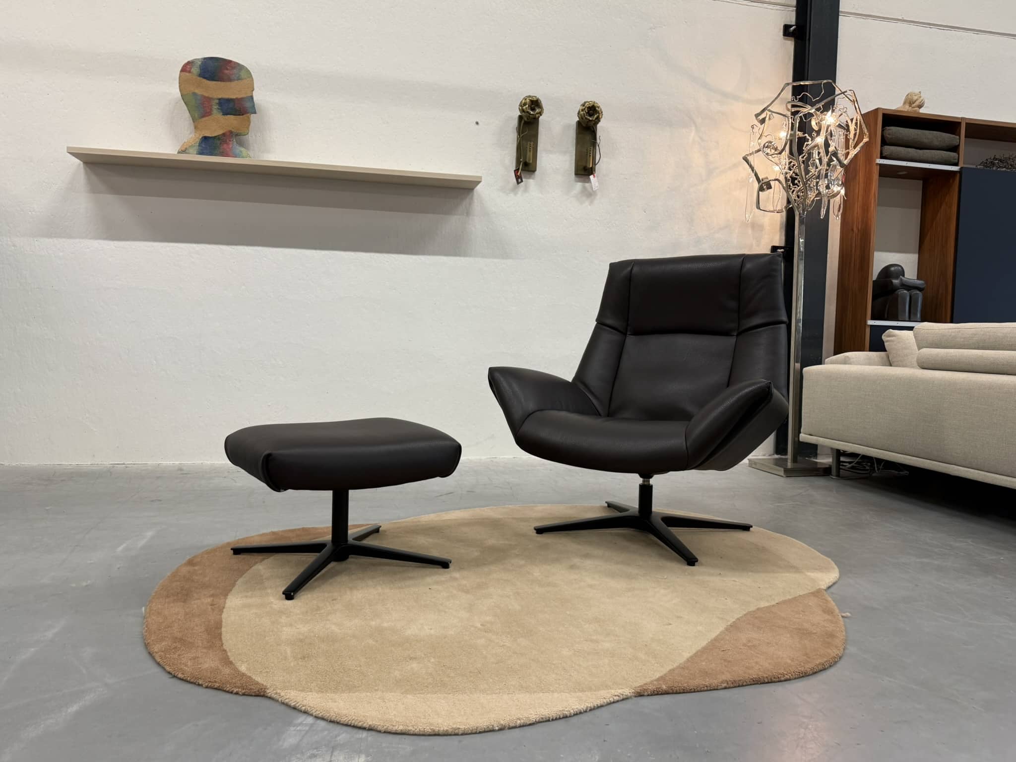 De bijpassende poef is niet alleen een visuele aanvulling, maar zorgt ook voor extra comfort en ondersteuning voor de benen.