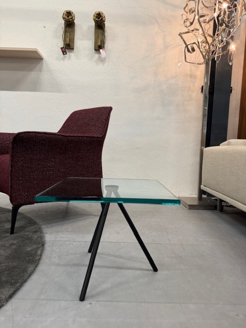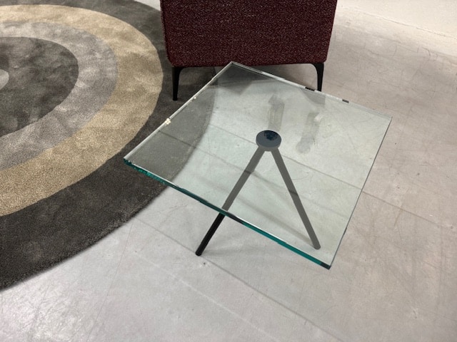 De ronde glazen bladen in combinatie met het zwarte onderstel geven de tafels een lichte, ruimtelijke uitstraling. Perfect om een zithoek net dat vleugje exclusiviteit te geven zonder te overheersen.