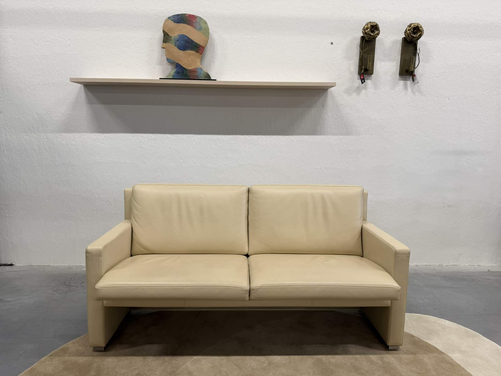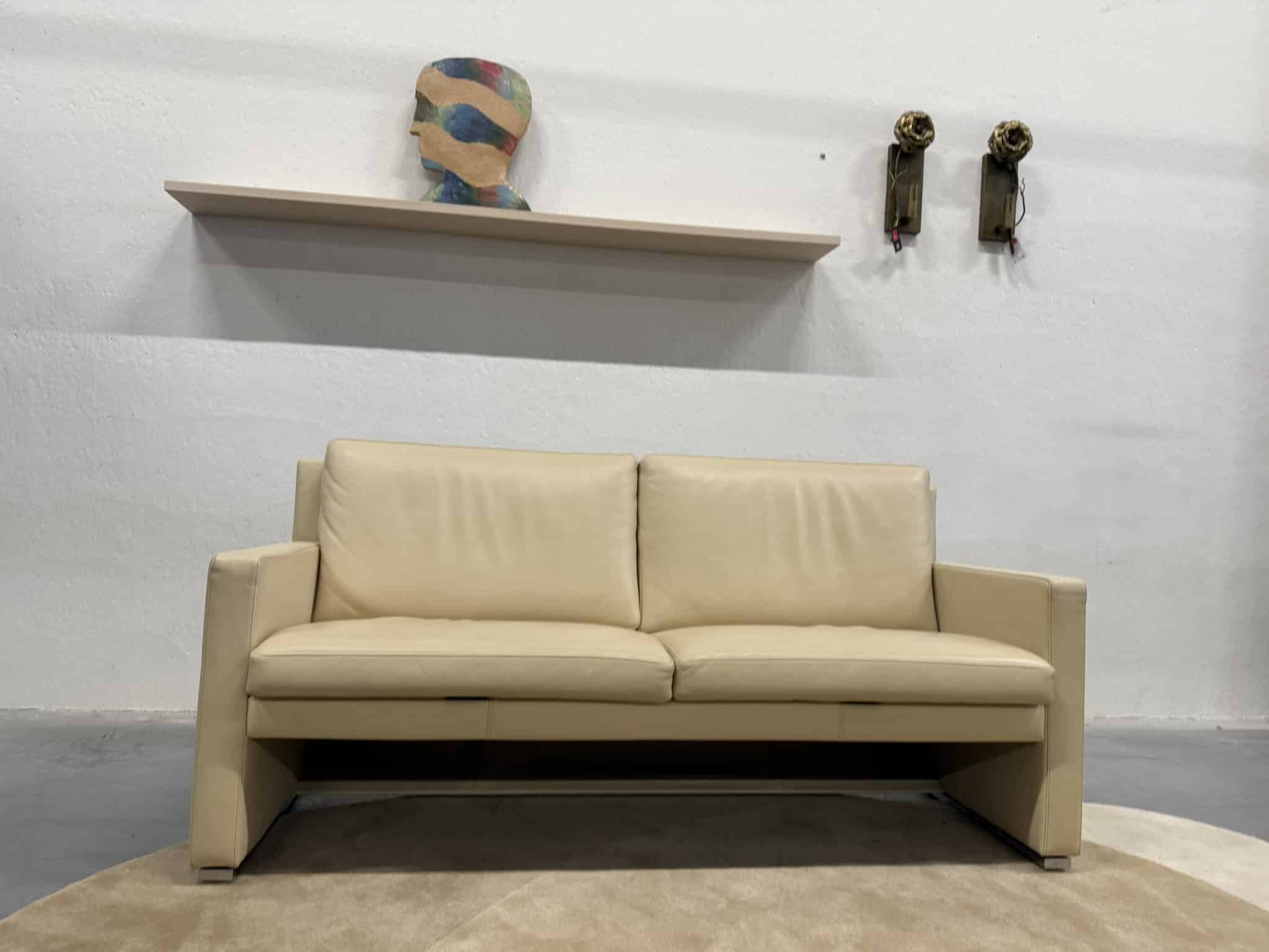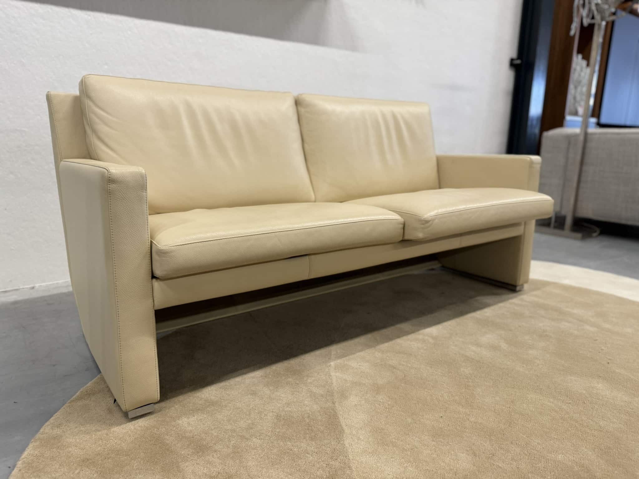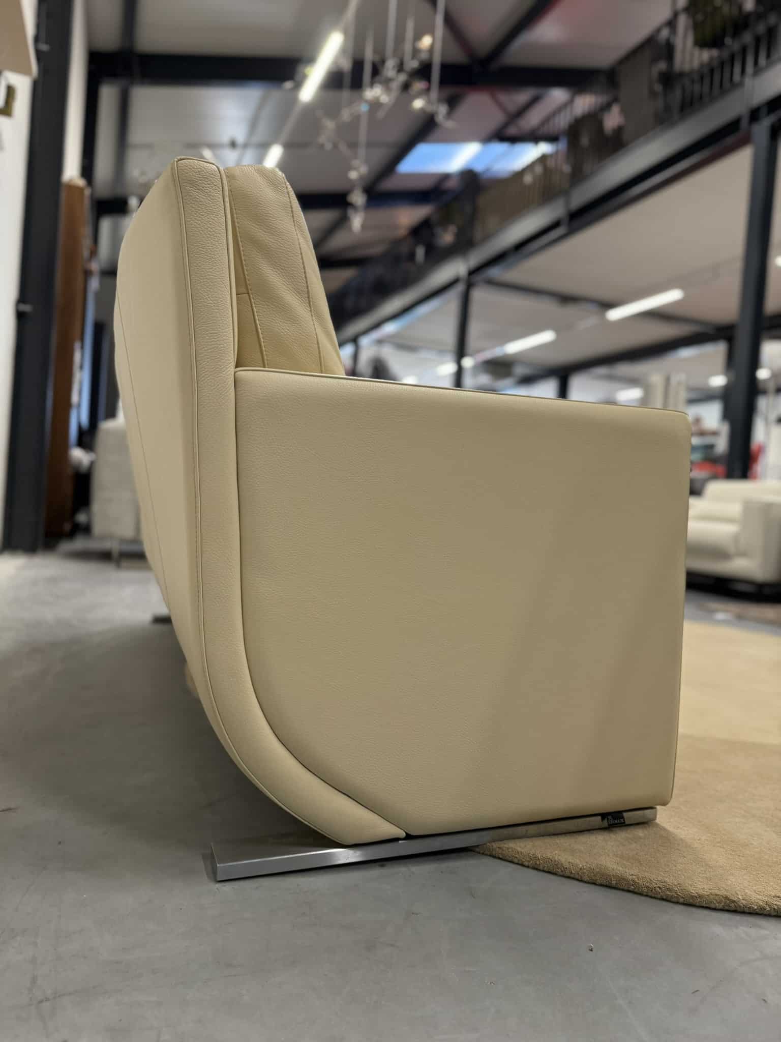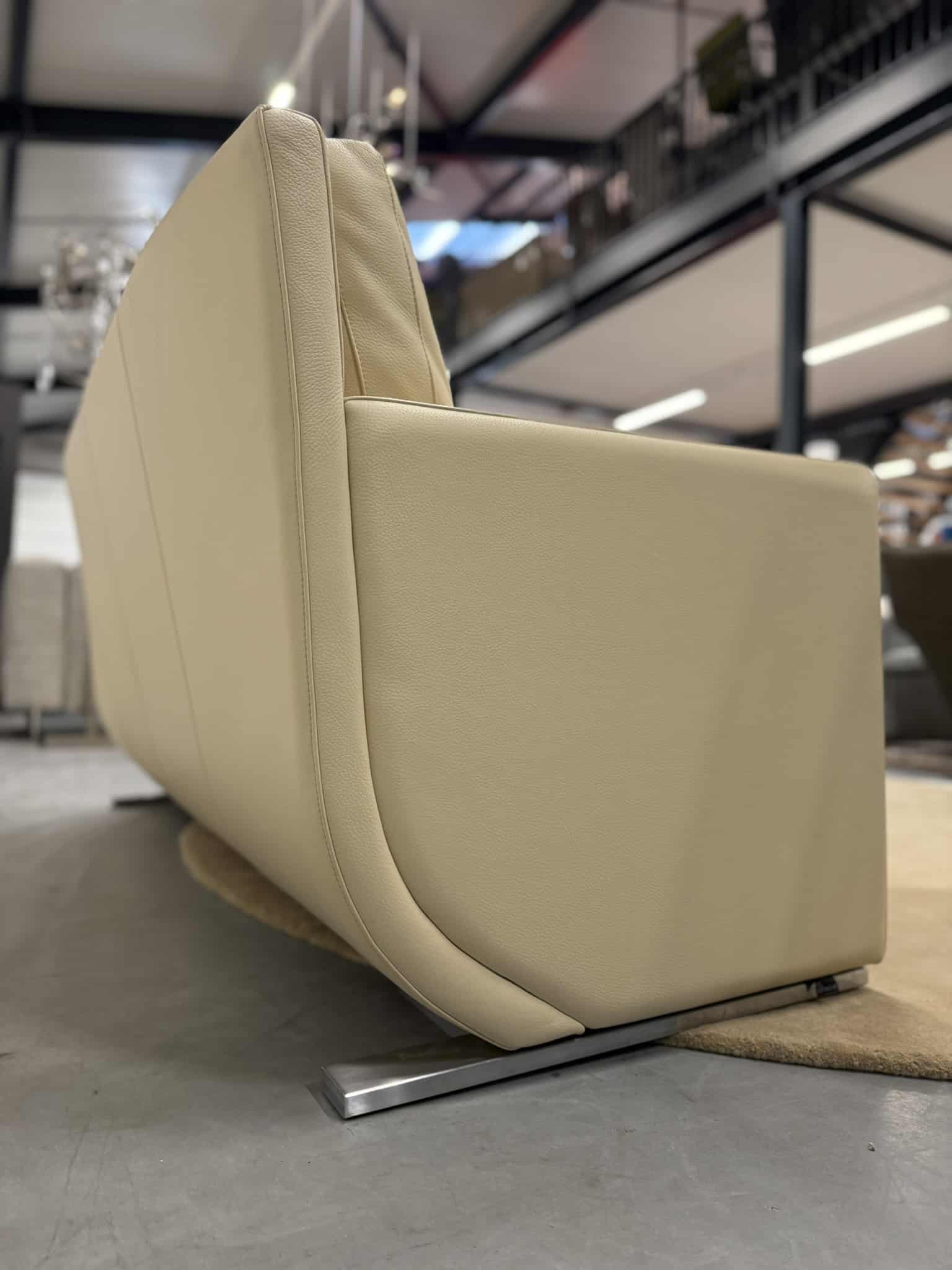 De Leolux Timandra 2,5-zits bank in Senso-leder, kleur Sahel, is een elegante verschijning die comfort en verfijnd design samenbrengt. Met zijn strakke belijning, ranke armleuningen en slanke aluminium poten straalt de bank moderne klasse uit, zonder dominant aanwezig te zijn.
